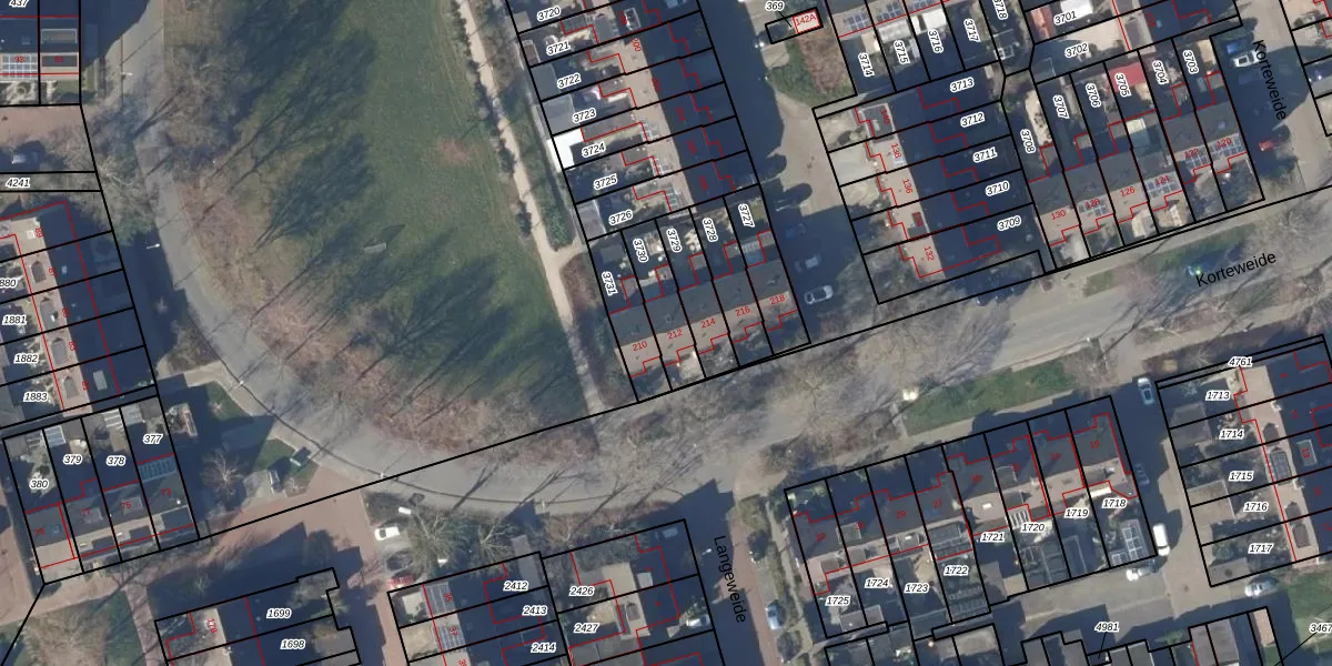 Korteweide 212 is gelegen op kadastraal perceel LGD00B3730. Deze kadastrale aanduiding is uniek en wordt gebruikt door het Kadaster om eigendomsrechten en andere zakelijke rechten vast te leggen. Het perceel maakt onderdeel uit van de kadastrale gemeente Langedijk.