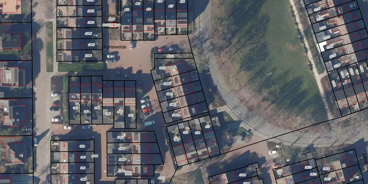Gebruik de zoekbalk of klik op een perceel voor informatie over de adressen binnen dit perceel.