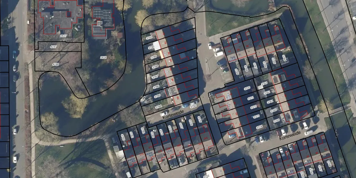 Het perceel waarop Korteweide 88 staat heeft een oppervlakte van 184 m². Dit is een middelgroot perceel. De perceeloppervlakte wordt geregistreerd door het Kadaster. Gedetailleerde informatie over de maten van dit perceel kunt u vinden in het rapport Kadastrale kaart met maatvoering van Korteweide 88.