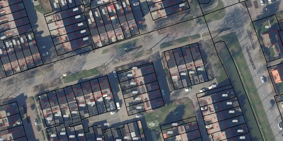 Het perceel waarop Korteweide 9 staat heeft een oppervlakte van 162 m². Dit is een middelgroot perceel. De perceeloppervlakte wordt geregistreerd door het Kadaster. Gedetailleerde informatie over de maten van dit perceel kunt u vinden in het rapport Kadastrale kaart met maatvoering van Korteweide 9.