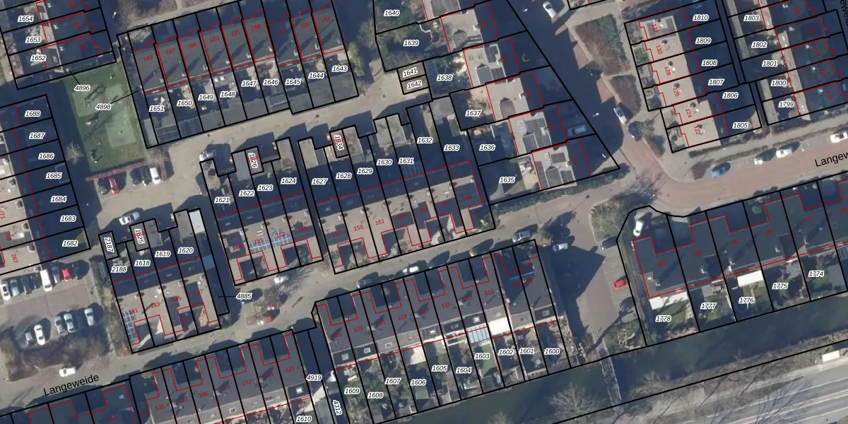 Langeweide 165 is gelegen op kadastraal perceel LGD00B1631. Deze kadastrale aanduiding is uniek en wordt gebruikt door het Kadaster om eigendomsrechten en andere zakelijke rechten vast te leggen. Het perceel maakt onderdeel uit van de kadastrale gemeente Langedijk.