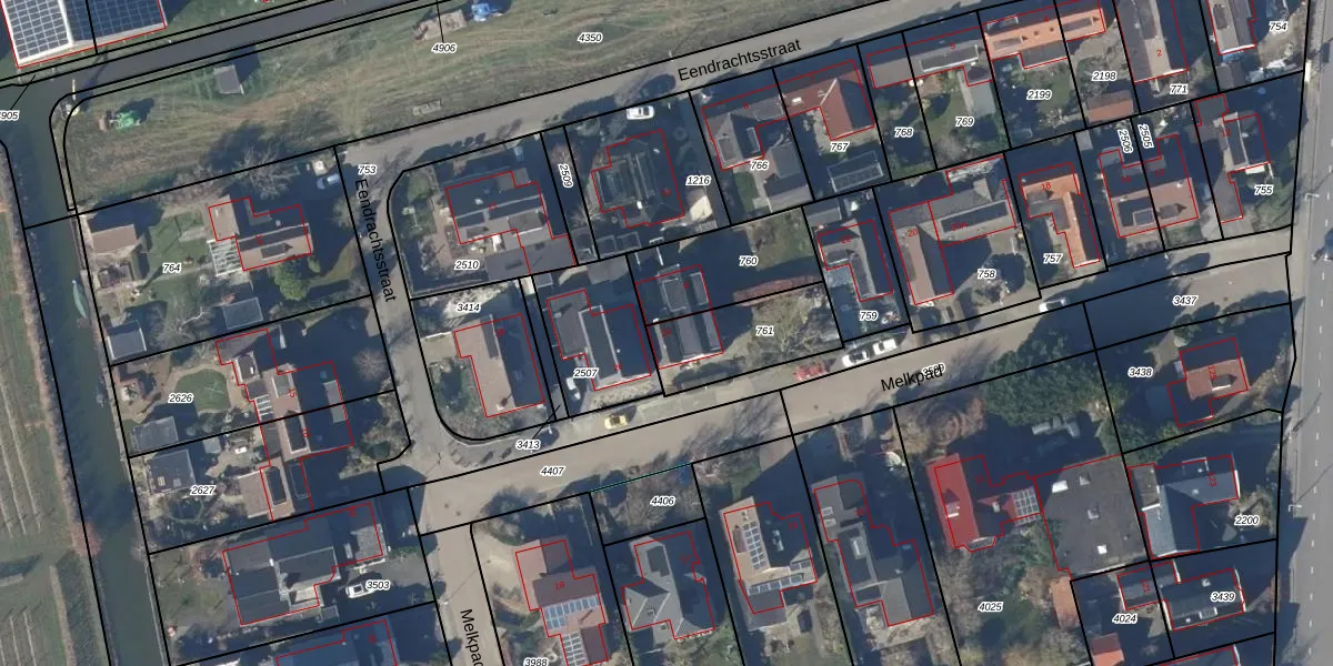 Gebruik de zoekbalk of klik op een perceel voor informatie over de adressen binnen dit perceel.