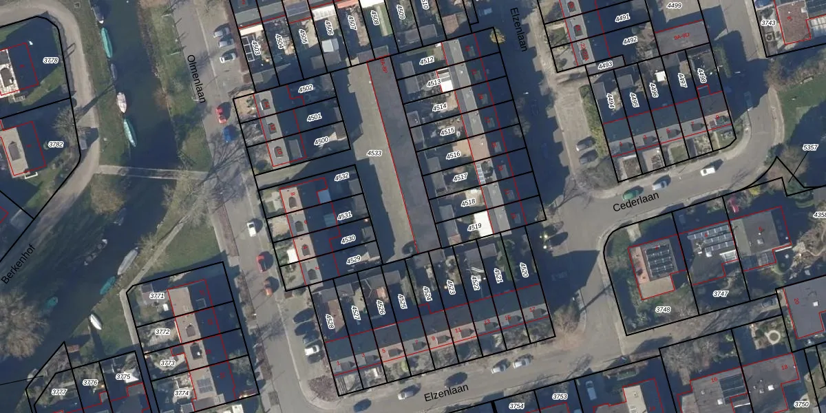 Olmenlaan 8-M is gelegen op kadastraal perceel LGD00G4533. Deze kadastrale aanduiding is uniek en wordt gebruikt door het Kadaster om eigendomsrechten en andere zakelijke rechten vast te leggen. Het perceel maakt onderdeel uit van de kadastrale gemeente Langedijk.