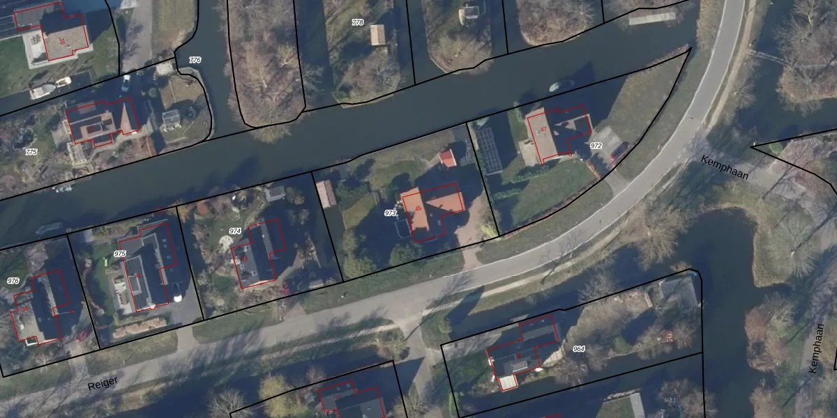 Het perceel waarop Reiger 45 staat heeft een oppervlakte van 1096 m². Dit is een zeer groot perceel. De perceeloppervlakte wordt geregistreerd door het Kadaster. Gedetailleerde informatie over de maten van dit perceel kunt u vinden in het rapport Kadastrale kaart met maatvoering van Reiger 45.