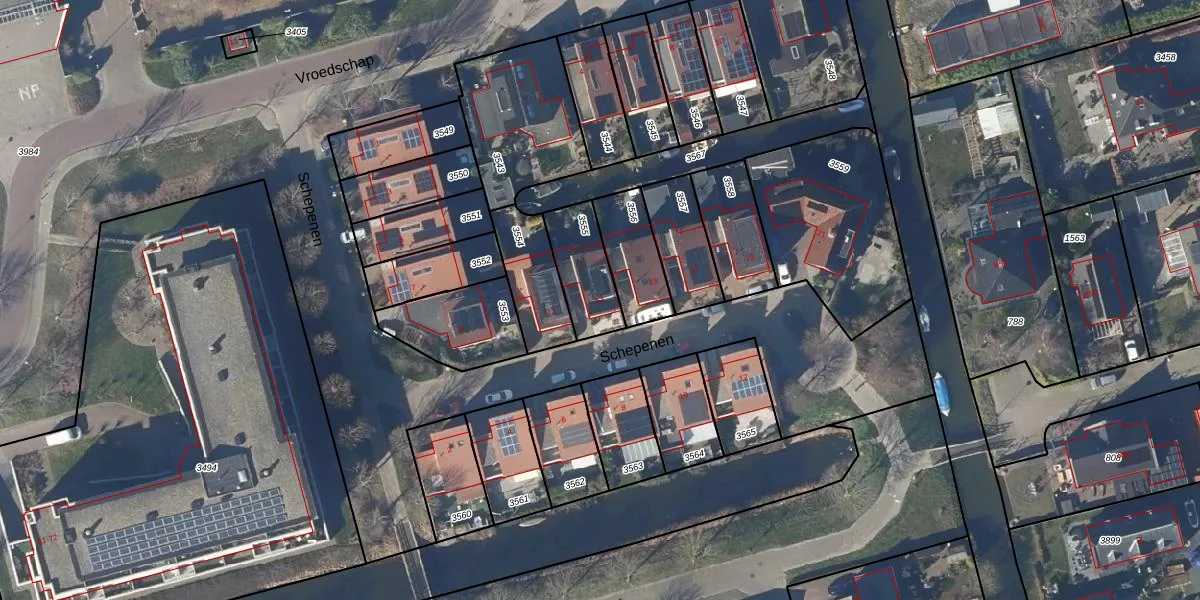 Gebruik de zoekbalk of klik op een perceel voor informatie over de adressen binnen dit perceel.