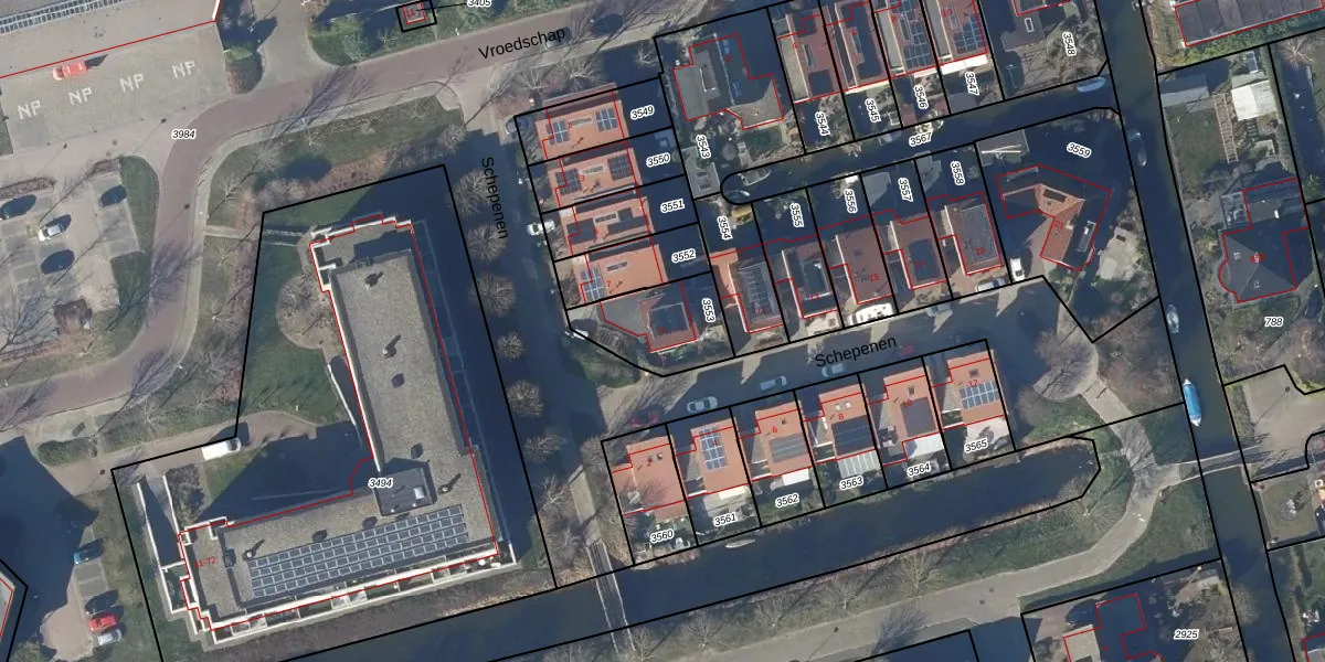 Het perceel waarop Schepenen 9 staat heeft een oppervlakte van 250 m². Dit is een middelgroot perceel. De perceeloppervlakte wordt geregistreerd door het Kadaster. Gedetailleerde informatie over de maten van dit perceel kunt u vinden in het rapport Kadastrale kaart met maatvoering van Schepenen 9.