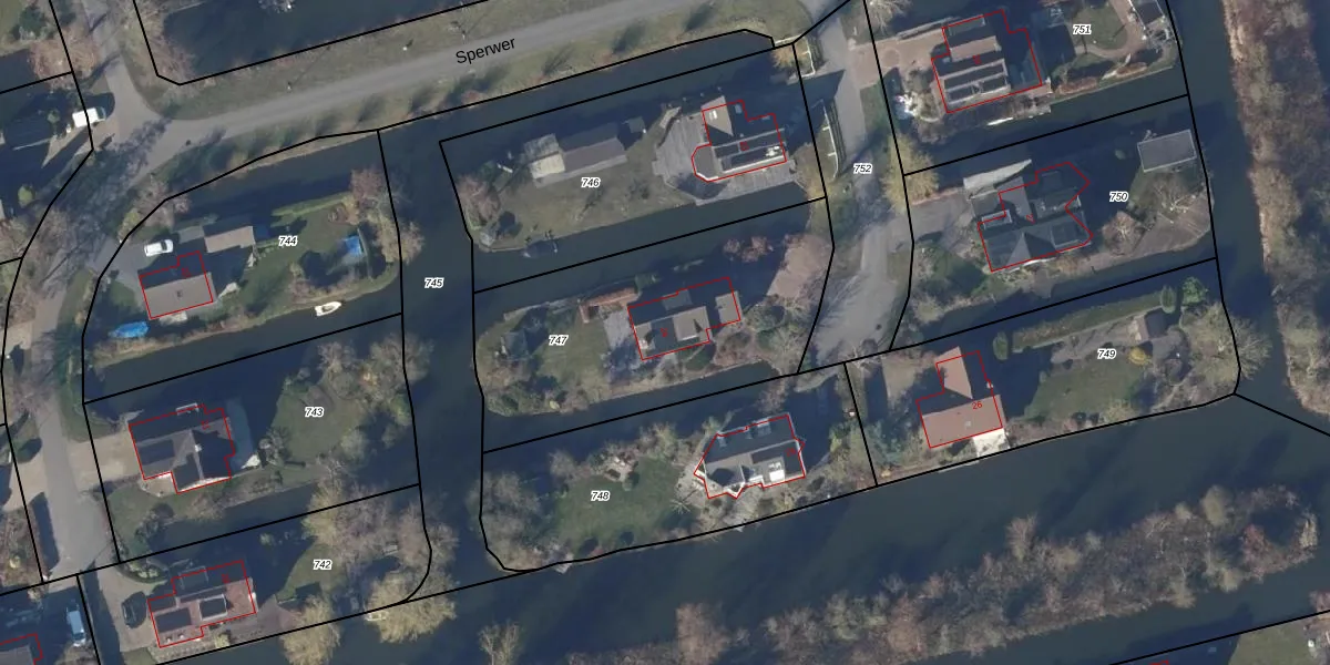 Het perceel waarop Sperwer 24 staat heeft een oppervlakte van 1285 m². Dit is een zeer groot perceel. De perceeloppervlakte wordt geregistreerd door het Kadaster. Gedetailleerde informatie over de maten van dit perceel kunt u vinden in het rapport Kadastrale kaart met maatvoering van Sperwer 24.