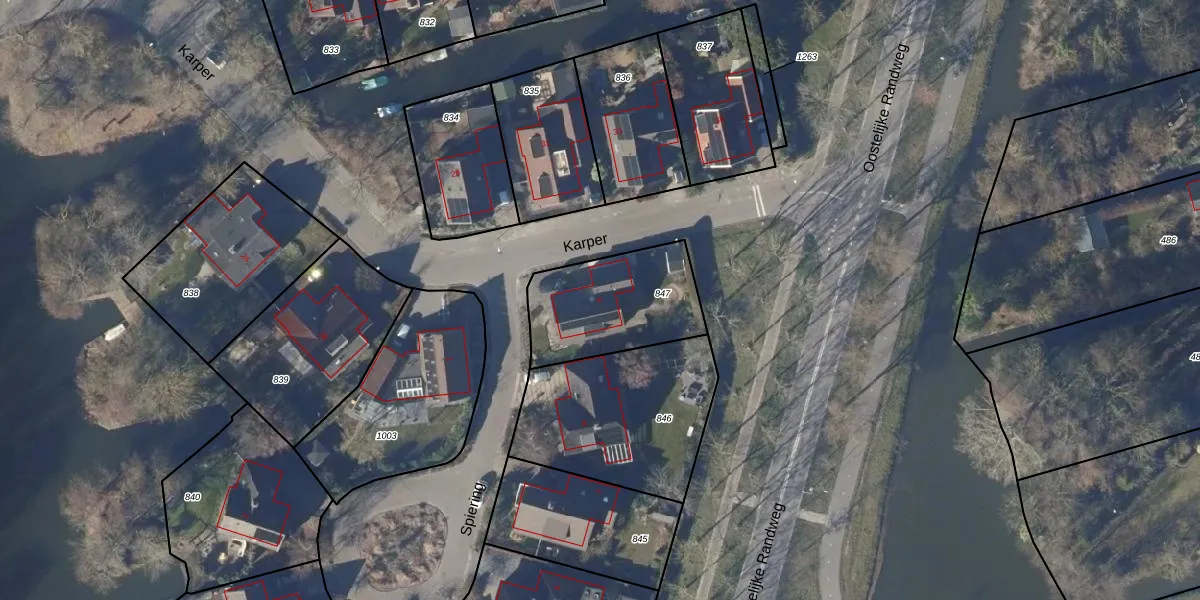 Gebruik de zoekbalk of klik op een perceel voor informatie over de adressen binnen dit perceel.