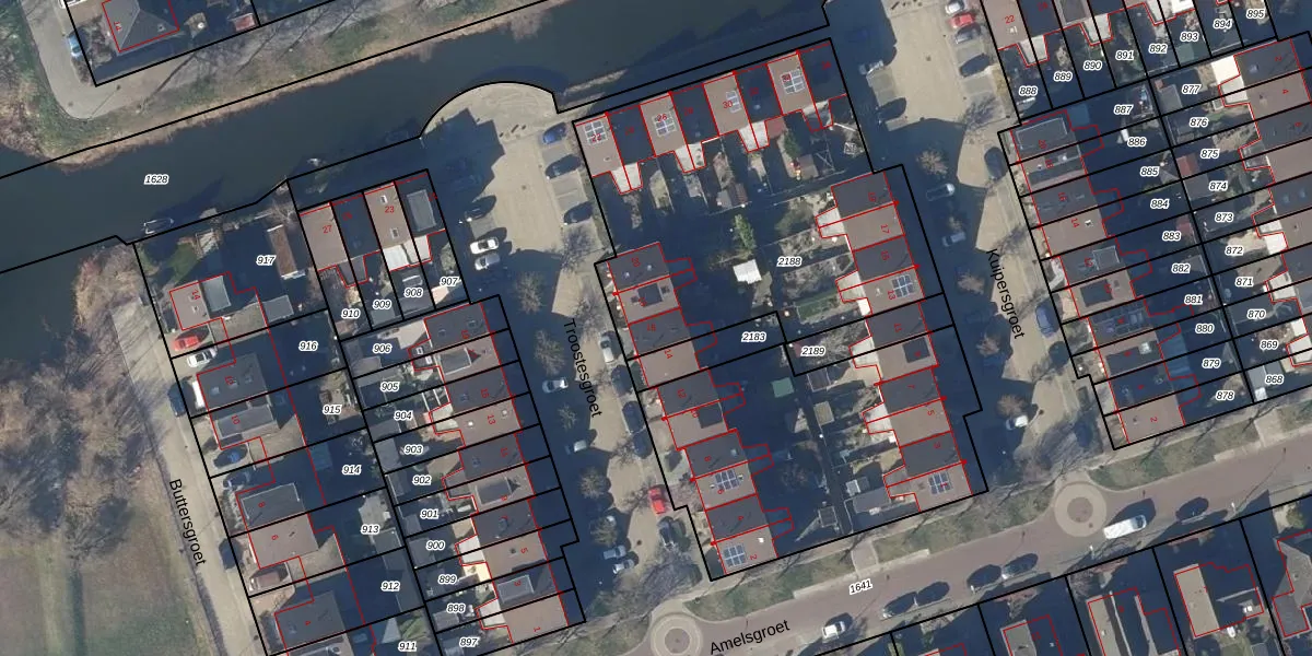 Het perceel waarop Troostesgroet 16 staat heeft een oppervlakte van 3113 m². Dit is een zeer groot perceel. De perceeloppervlakte wordt geregistreerd door het Kadaster. Gedetailleerde informatie over de maten van dit perceel kunt u vinden in het rapport Kadastrale kaart met maatvoering van Troostesgroet 16.