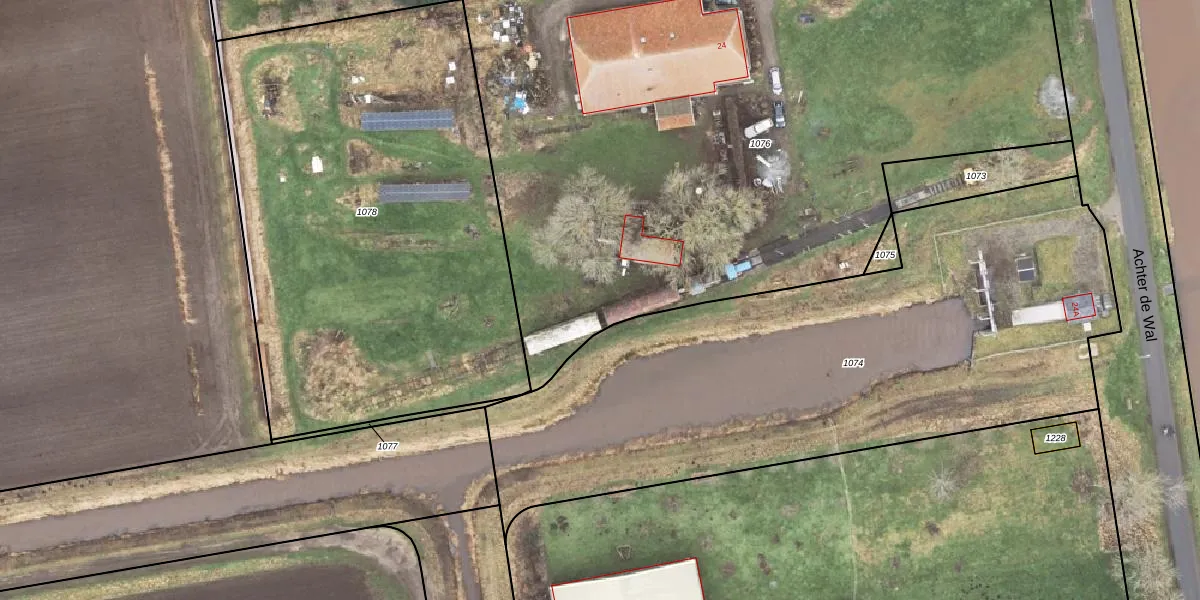 Achter de Wal 24-B is gelegen op kadastraal perceel MTD01E1076. Deze kadastrale aanduiding is uniek en wordt gebruikt door het Kadaster om eigendomsrechten en andere zakelijke rechten vast te leggen. Het perceel maakt onderdeel uit van de kadastrale gemeente Muntendam.
