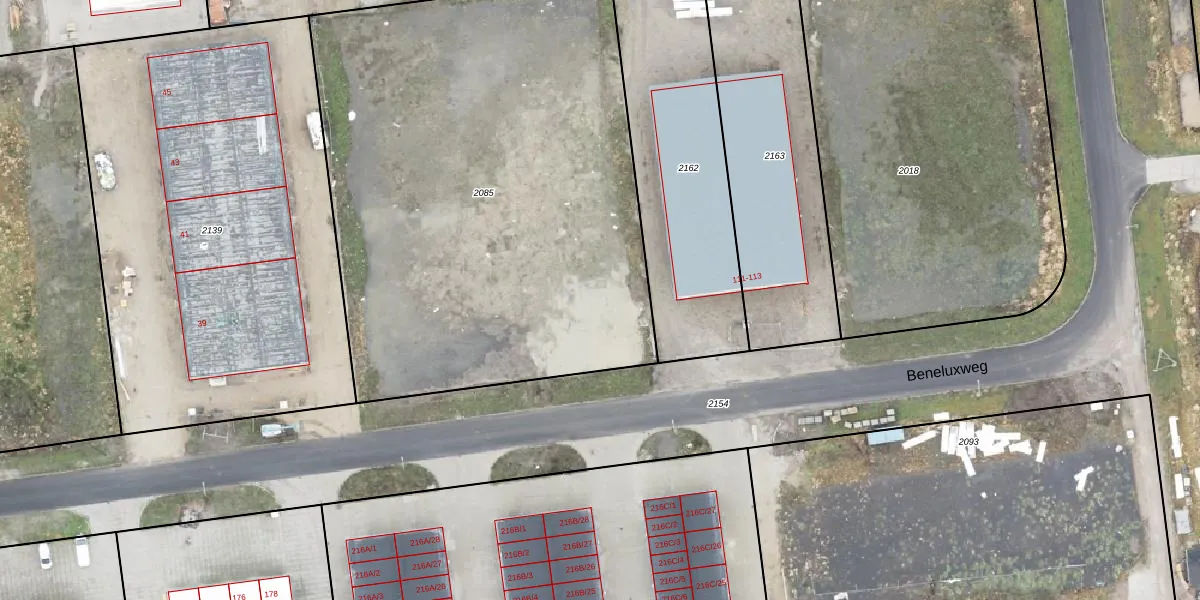 Het perceel waarop Beneluxweg 107 staat heeft een oppervlakte van 3296 m². Dit is een zeer groot perceel. De perceeloppervlakte wordt geregistreerd door het Kadaster. Gedetailleerde informatie over de maten van dit perceel kunt u vinden in het rapport Kadastrale kaart met maatvoering van Beneluxweg 107.