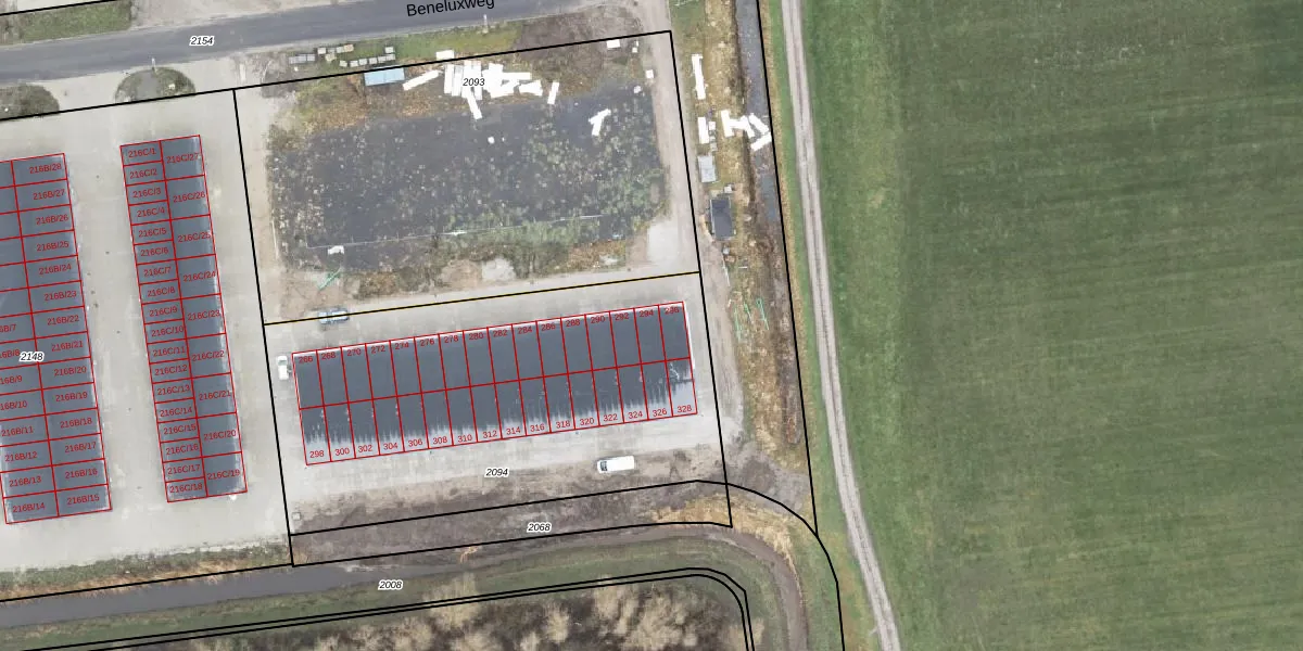 Het perceel waarop Beneluxweg 294 staat heeft een oppervlakte van 2171 m². Dit is een zeer groot perceel. De perceeloppervlakte wordt geregistreerd door het Kadaster. Gedetailleerde informatie over de maten van dit perceel kunt u vinden in het rapport Kadastrale kaart met maatvoering van Beneluxweg 294.