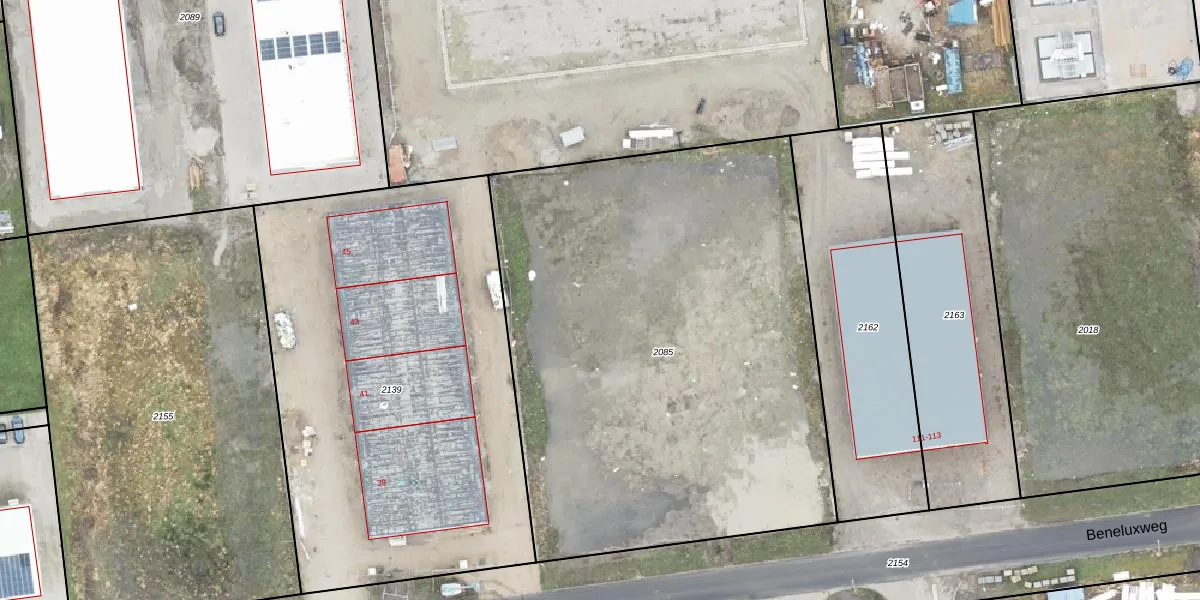 Het perceel waarop Beneluxweg 53 staat heeft een oppervlakte van 3296 m². Dit is een zeer groot perceel. De perceeloppervlakte wordt geregistreerd door het Kadaster. Gedetailleerde informatie over de maten van dit perceel kunt u vinden in het rapport Kadastrale kaart met maatvoering van Beneluxweg 53.