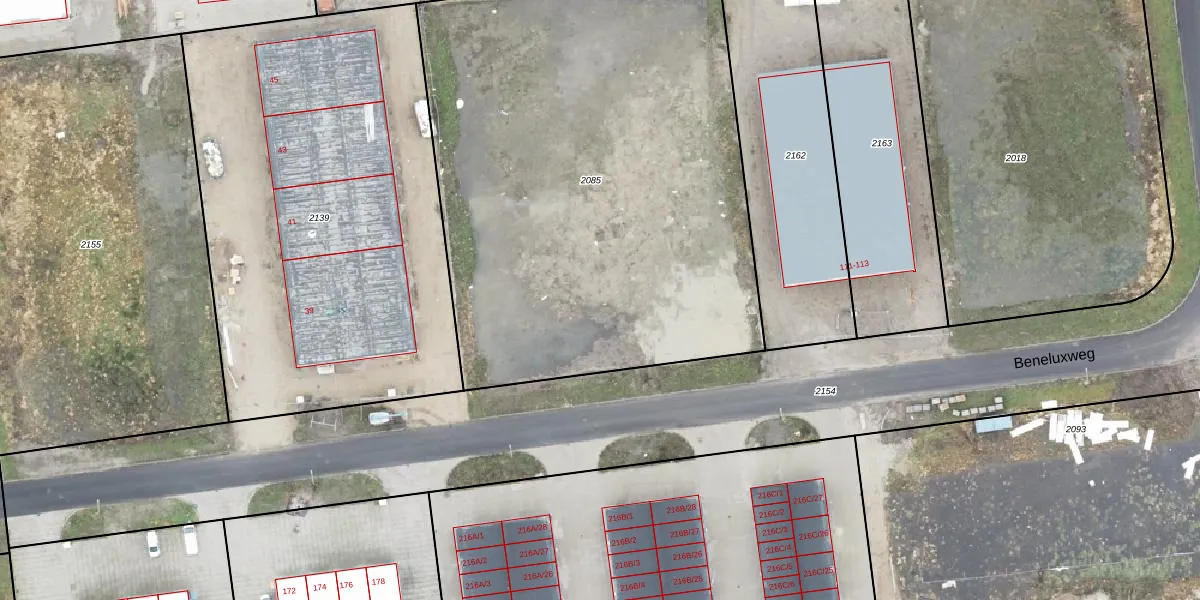 Het perceel waarop Beneluxweg 71 staat heeft een oppervlakte van 3296 m². Dit is een zeer groot perceel. De perceeloppervlakte wordt geregistreerd door het Kadaster. Gedetailleerde informatie over de maten van dit perceel kunt u vinden in het rapport Kadastrale kaart met maatvoering van Beneluxweg 71.