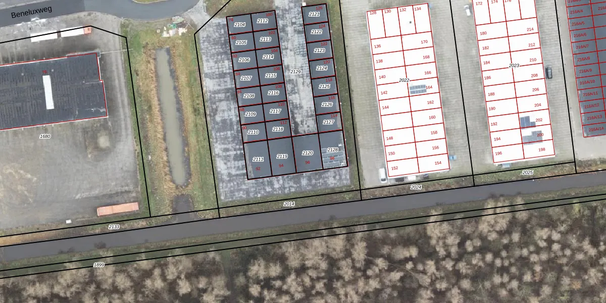 Beneluxweg 96 is gelegen op kadastraal perceel ZBK00F2120. Deze kadastrale aanduiding is uniek en wordt gebruikt door het Kadaster om eigendomsrechten en andere zakelijke rechten vast te leggen. Het perceel maakt onderdeel uit van de kadastrale gemeente Zuidbroek.