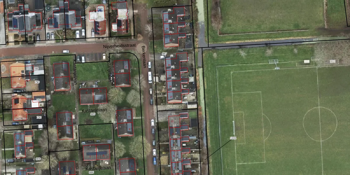 Het perceel waarop Berkenlaan 16 staat heeft een oppervlakte van 1395 m². Dit is een zeer groot perceel. De perceeloppervlakte wordt geregistreerd door het Kadaster. Gedetailleerde informatie over de maten van dit perceel kunt u vinden in het rapport Kadastrale kaart met maatvoering van Berkenlaan 16.