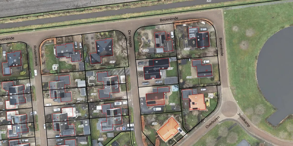 Het perceel waarop De Hoogte 1 staat heeft een oppervlakte van 531 m². Dit is een groot perceel. De perceeloppervlakte wordt geregistreerd door het Kadaster. Gedetailleerde informatie over de maten van dit perceel kunt u vinden in het rapport Kadastrale kaart met maatvoering van De Hoogte 1.
