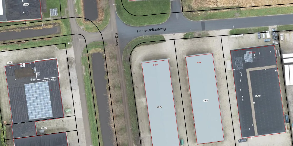 Het perceel waarop Eems-Dollardweg 1-A staat heeft een oppervlakte van 2550 m². Dit is een zeer groot perceel. De perceeloppervlakte wordt geregistreerd door het Kadaster. Gedetailleerde informatie over de maten van dit perceel kunt u vinden in het rapport Kadastrale kaart met maatvoering van Eems-Dollardweg 1-A.