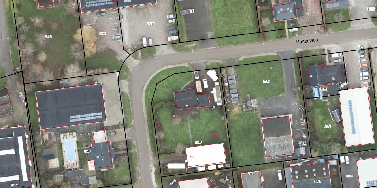 Het perceel waarop Hanzeweg 2 staat heeft een oppervlakte van 2003 m². Dit is een zeer groot perceel. De perceeloppervlakte wordt geregistreerd door het Kadaster. Gedetailleerde informatie over de maten van dit perceel kunt u vinden in het rapport Kadastrale kaart met maatvoering van Hanzeweg 2.