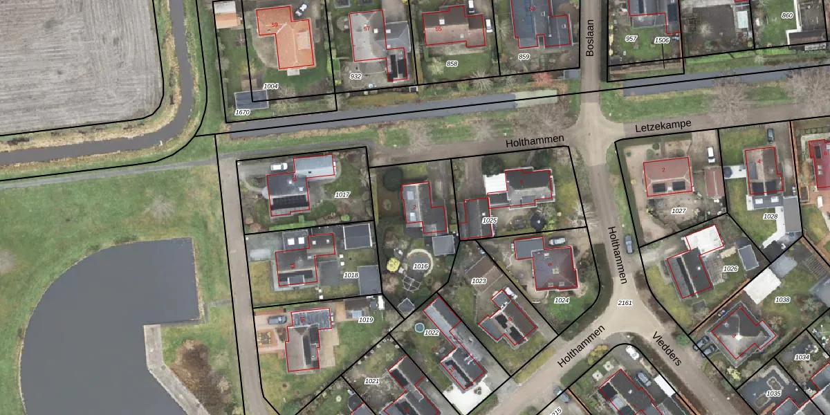 Het perceel waarop Holthammen 2 staat heeft een oppervlakte van 635 m². Dit is een groot perceel. De perceeloppervlakte wordt geregistreerd door het Kadaster. Gedetailleerde informatie over de maten van dit perceel kunt u vinden in het rapport Kadastrale kaart met maatvoering van Holthammen 2.