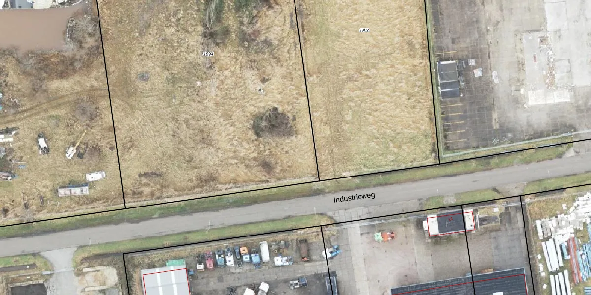 Het perceel waarop Industrieweg 13-E-02 staat heeft een oppervlakte van 6050 m². Dit is een zeer groot perceel. De perceeloppervlakte wordt geregistreerd door het Kadaster. Gedetailleerde informatie over de maten van dit perceel kunt u vinden in het rapport Kadastrale kaart met maatvoering van Industrieweg 13-E-02.