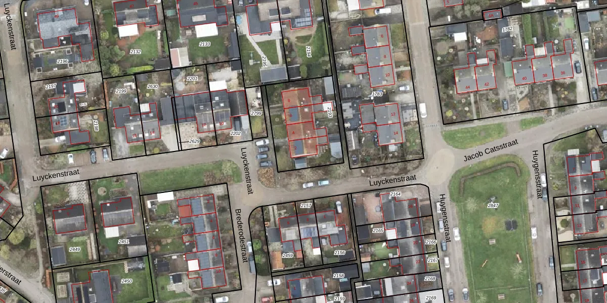 Het perceel waarop Luyckenstraat 2 staat heeft een oppervlakte van 642 m². Dit is een groot perceel. De perceeloppervlakte wordt geregistreerd door het Kadaster. Gedetailleerde informatie over de maten van dit perceel kunt u vinden in het rapport Kadastrale kaart met maatvoering van Luyckenstraat 2.