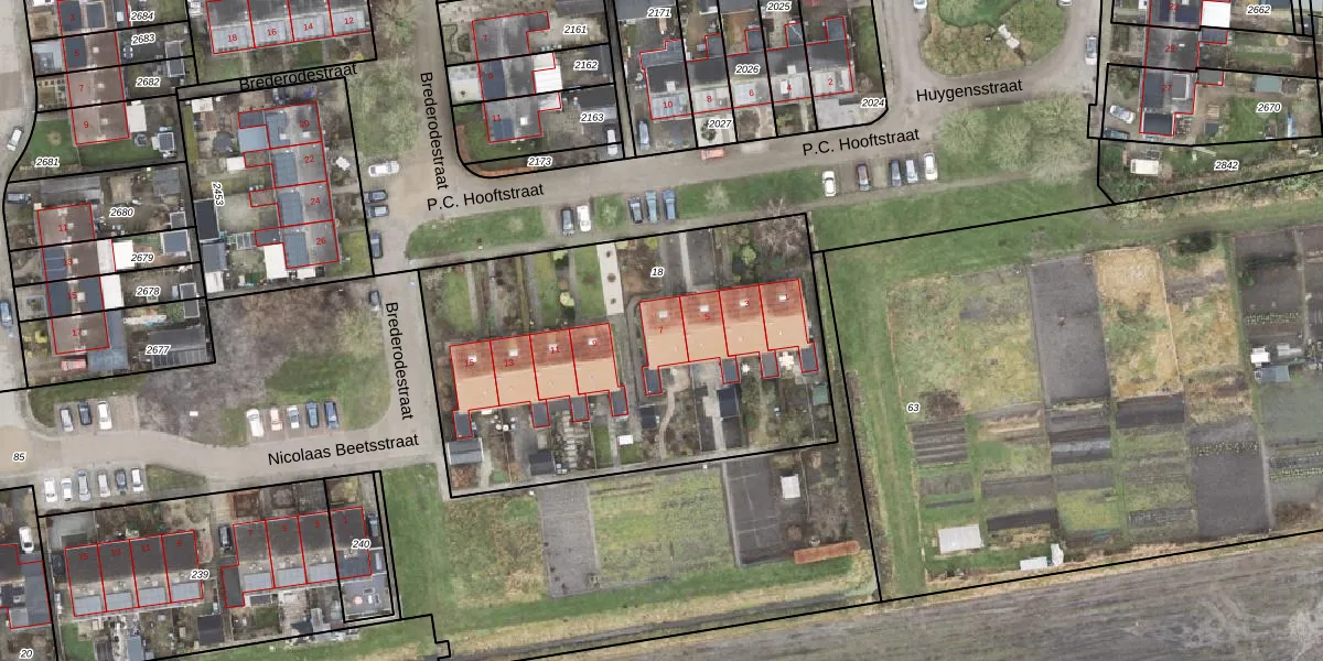 P.C. Hooftstraat 7 is gelegen op kadastraal perceel ZBK00G18. Deze kadastrale aanduiding is uniek en wordt gebruikt door het Kadaster om eigendomsrechten en andere zakelijke rechten vast te leggen. Het perceel maakt onderdeel uit van de kadastrale gemeente Zuidbroek.