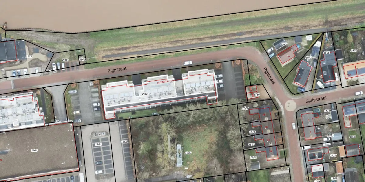Het perceel waarop Pijpstraat 18 staat heeft een oppervlakte van 2390 m². Dit is een zeer groot perceel. De perceeloppervlakte wordt geregistreerd door het Kadaster. Gedetailleerde informatie over de maten van dit perceel kunt u vinden in het rapport Kadastrale kaart met maatvoering van Pijpstraat 18.