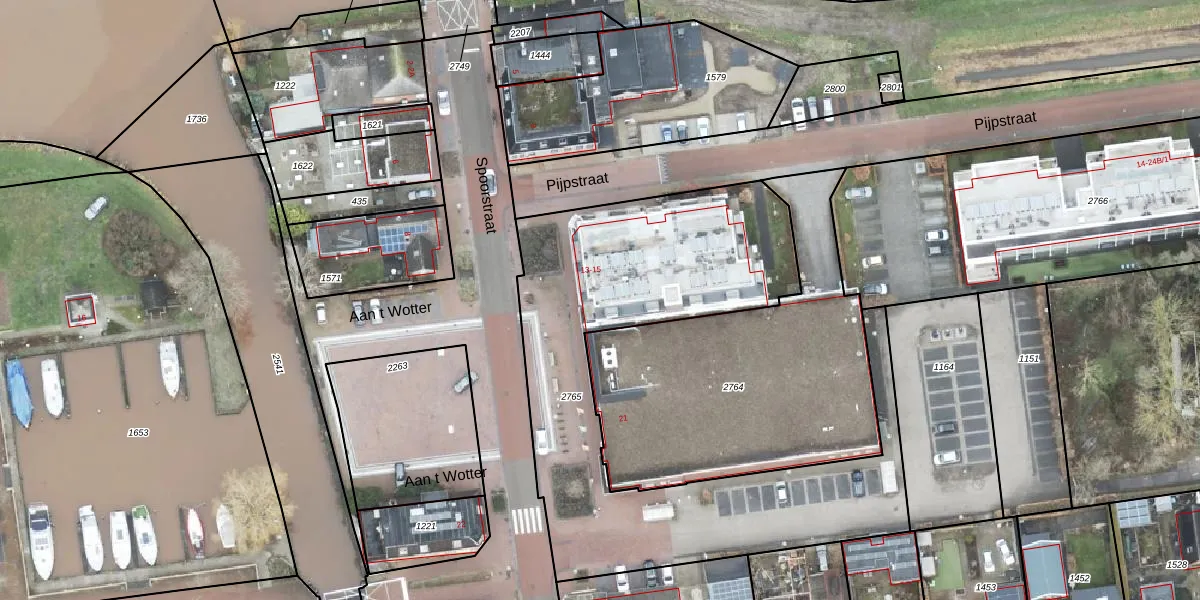 Het perceel waarop Pijpstraat 2-1 staat heeft een oppervlakte van 2084 m². Dit is een zeer groot perceel. De perceeloppervlakte wordt geregistreerd door het Kadaster. Gedetailleerde informatie over de maten van dit perceel kunt u vinden in het rapport Kadastrale kaart met maatvoering van Pijpstraat 2-1.