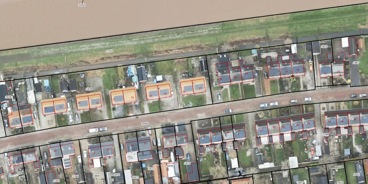 Het perceel waarop Sluisstraat 25 staat heeft een oppervlakte van 2915 m². Dit is een zeer groot perceel. De perceeloppervlakte wordt geregistreerd door het Kadaster. Gedetailleerde informatie over de maten van dit perceel kunt u vinden in het rapport Kadastrale kaart met maatvoering van Sluisstraat 25.
