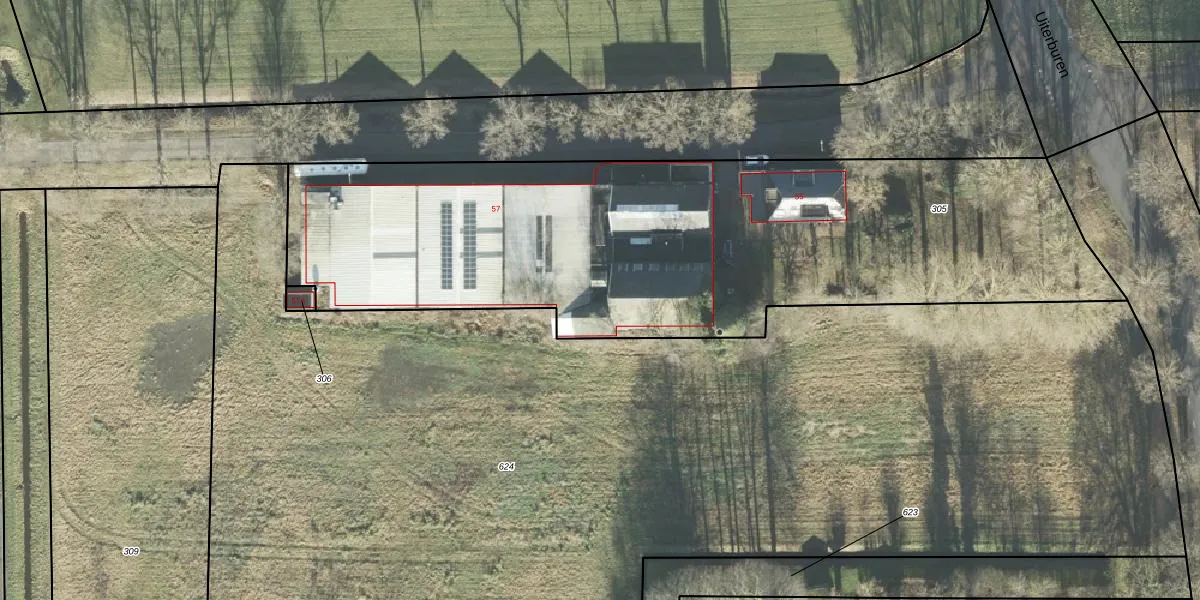 Uiterburen 57 is gelegen op kadastraal perceel ZBK00F305. Deze kadastrale aanduiding is uniek en wordt gebruikt door het Kadaster om eigendomsrechten en andere zakelijke rechten vast te leggen. Het perceel maakt onderdeel uit van de kadastrale gemeente Zuidbroek.