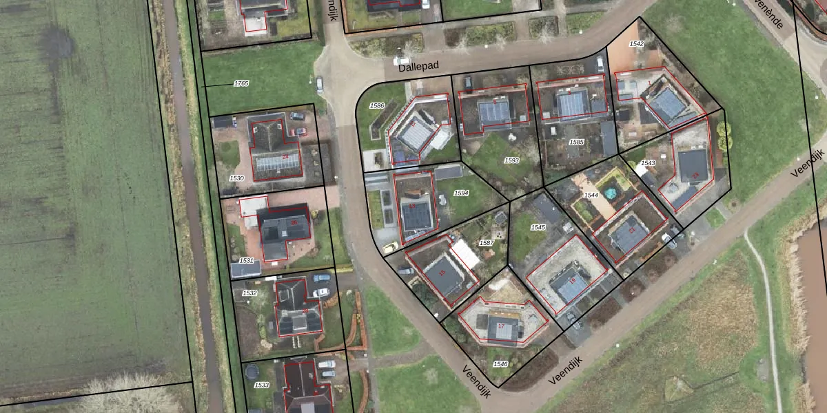 Het perceel waarop Veendijk 13 staat heeft een oppervlakte van 498 m². Dit is een groot perceel. De perceeloppervlakte wordt geregistreerd door het Kadaster. Gedetailleerde informatie over de maten van dit perceel kunt u vinden in het rapport Kadastrale kaart met maatvoering van Veendijk 13.