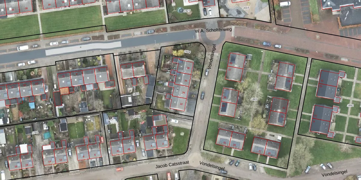 Het perceel waarop Vondelsingel 34 staat heeft een oppervlakte van 935 m². Dit is een groot perceel. De perceeloppervlakte wordt geregistreerd door het Kadaster. Gedetailleerde informatie over de maten van dit perceel kunt u vinden in het rapport Kadastrale kaart met maatvoering van Vondelsingel 34.