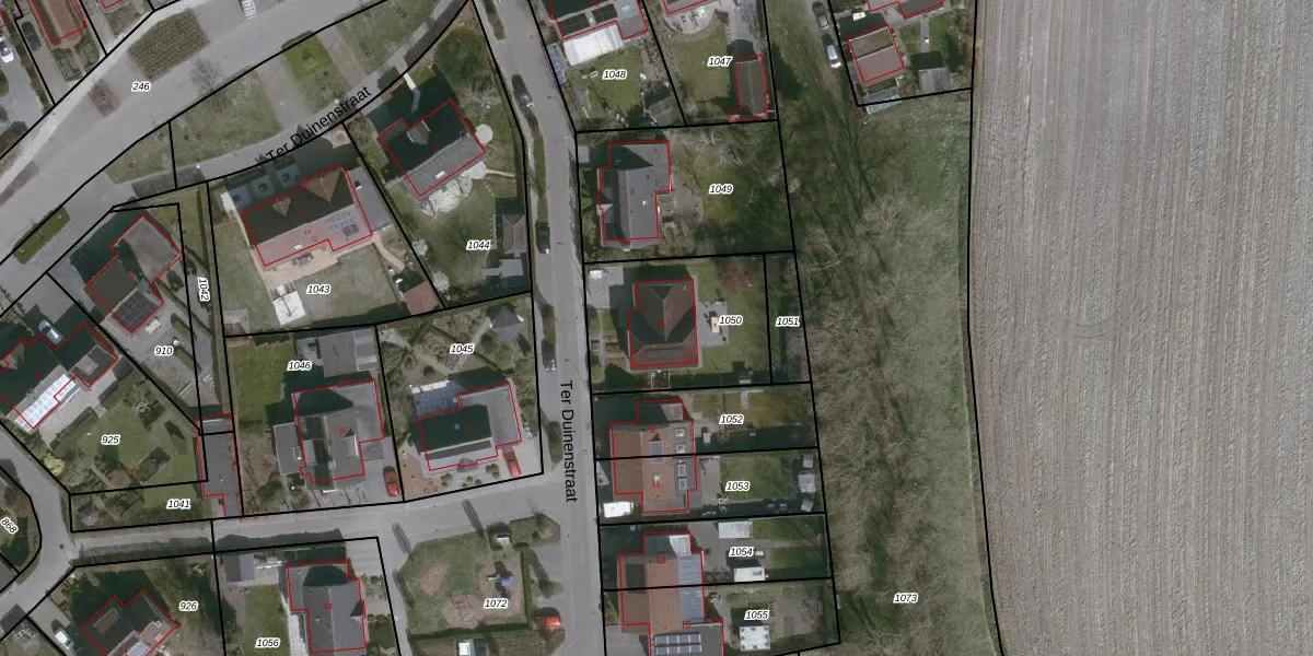 Ter Duinenstraat 5 is gelegen op kadastraal perceel AEL00M1050. Deze kadastrale aanduiding is uniek en wordt gebruikt door het Kadaster om eigendomsrechten en andere zakelijke rechten vast te leggen. Het perceel maakt onderdeel uit van de kadastrale gemeente Axel.