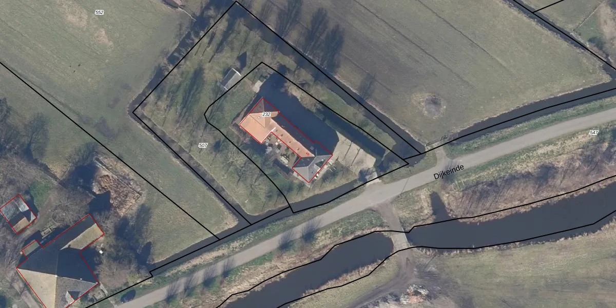 Dijkeinde 5 is gelegen op kadastraal perceel BRO00G232. Deze kadastrale aanduiding is uniek en wordt gebruikt door het Kadaster om eigendomsrechten en andere zakelijke rechten vast te leggen. Het perceel maakt onderdeel uit van de kadastrale gemeente Broek in Waterland.