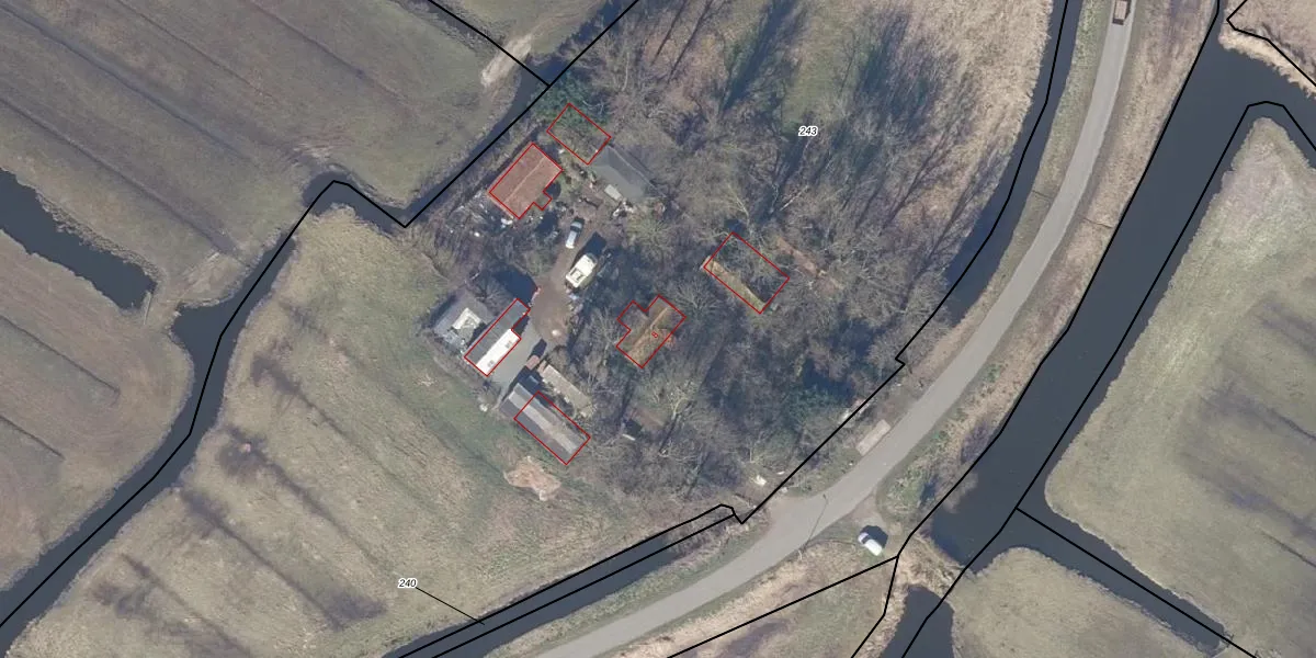 Het adres ligt op het perceel BRO00-G-243, dat zich in de kadastrale gemeente Broek in Waterland bevindt. Het perceel is met 1,2 ha relatief groot. Het gemiddelde ligt in de kadastrale gemeente Broek in Waterland op 8355,54 m². De grootste perceeloppervlakte in de kadastrale gemeente is 1,06 km². De kleinste oppervlakte bedraagt 0 m². Dit is het enige adres dat aanwezig is op het perceel. De laatste wijziging in het de Basisregistratie Kadaster (BRK) was op 22-06-2012.
