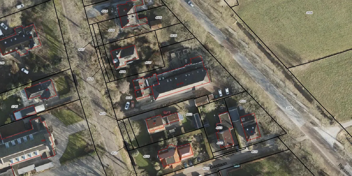 Het perceel waarop de Gast 67-a staat heeft een oppervlakte van 1925 m². Dit is een zeer groot perceel. De perceeloppervlakte wordt geregistreerd door het Kadaster. Gedetailleerde informatie over de maten van dit perceel kunt u vinden in het rapport Kadastrale kaart met maatvoering van de Gast 67-a.