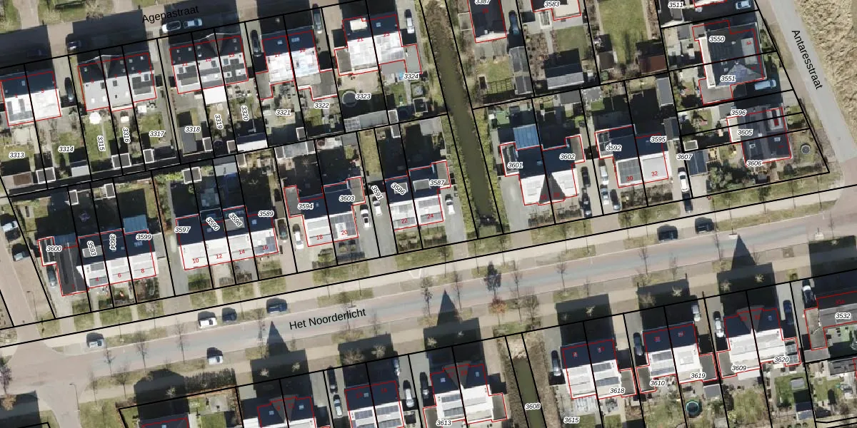 Het Noorderlicht 24 is gelegen op kadastraal perceel ZHN00A3587. Deze kadastrale aanduiding is uniek en wordt gebruikt door het Kadaster om eigendomsrechten en andere zakelijke rechten vast te leggen. Het perceel maakt onderdeel uit van de kadastrale gemeente Zuidhorn.