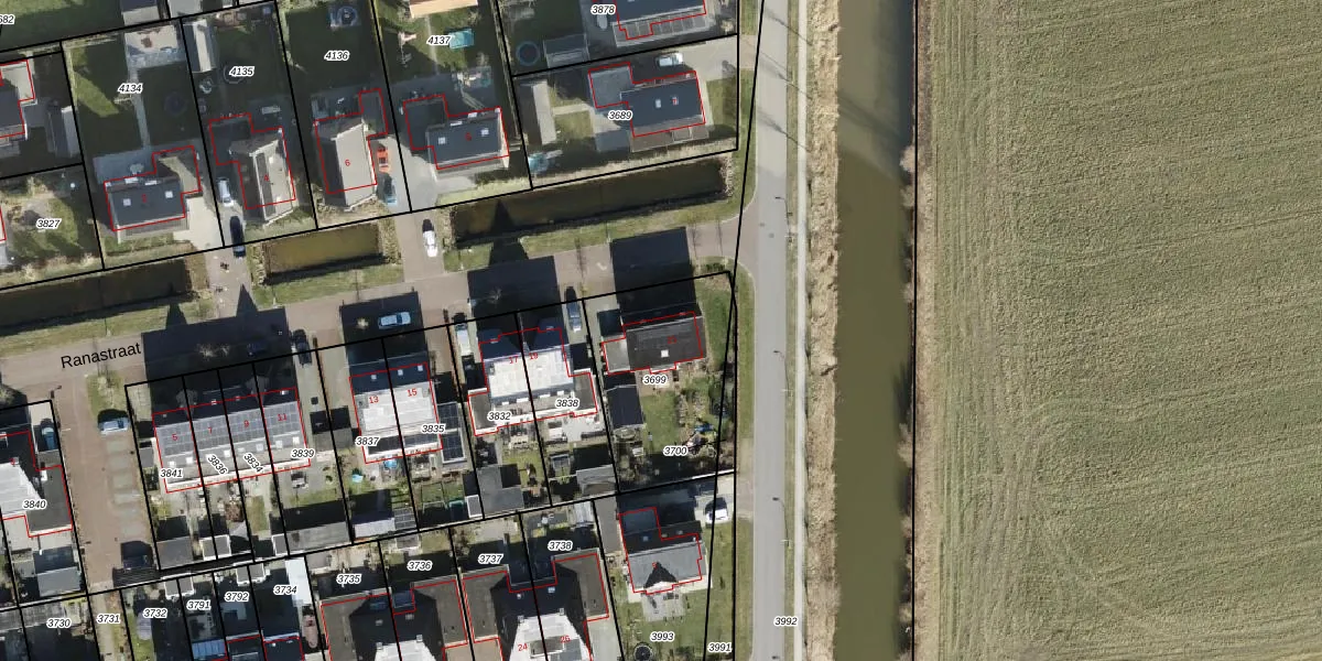 Ranastraat 21 is gelegen op kadastraal perceel ZHN00A3699. Deze kadastrale aanduiding is uniek en wordt gebruikt door het Kadaster om eigendomsrechten en andere zakelijke rechten vast te leggen. Het perceel maakt onderdeel uit van de kadastrale gemeente Zuidhorn.