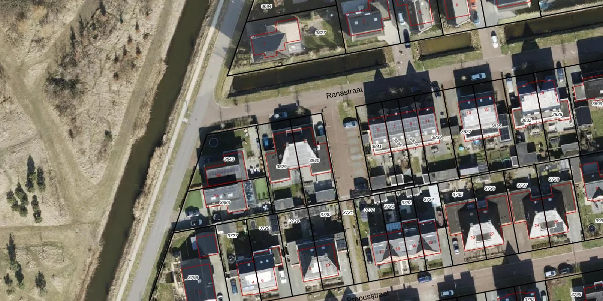 Het perceel waarop Ranastraat 3 staat heeft een oppervlakte van 319 m². Dit is een groot perceel. De perceeloppervlakte wordt geregistreerd door het Kadaster. Gedetailleerde informatie over de maten van dit perceel kunt u vinden in het rapport Kadastrale kaart met maatvoering van Ranastraat 3.