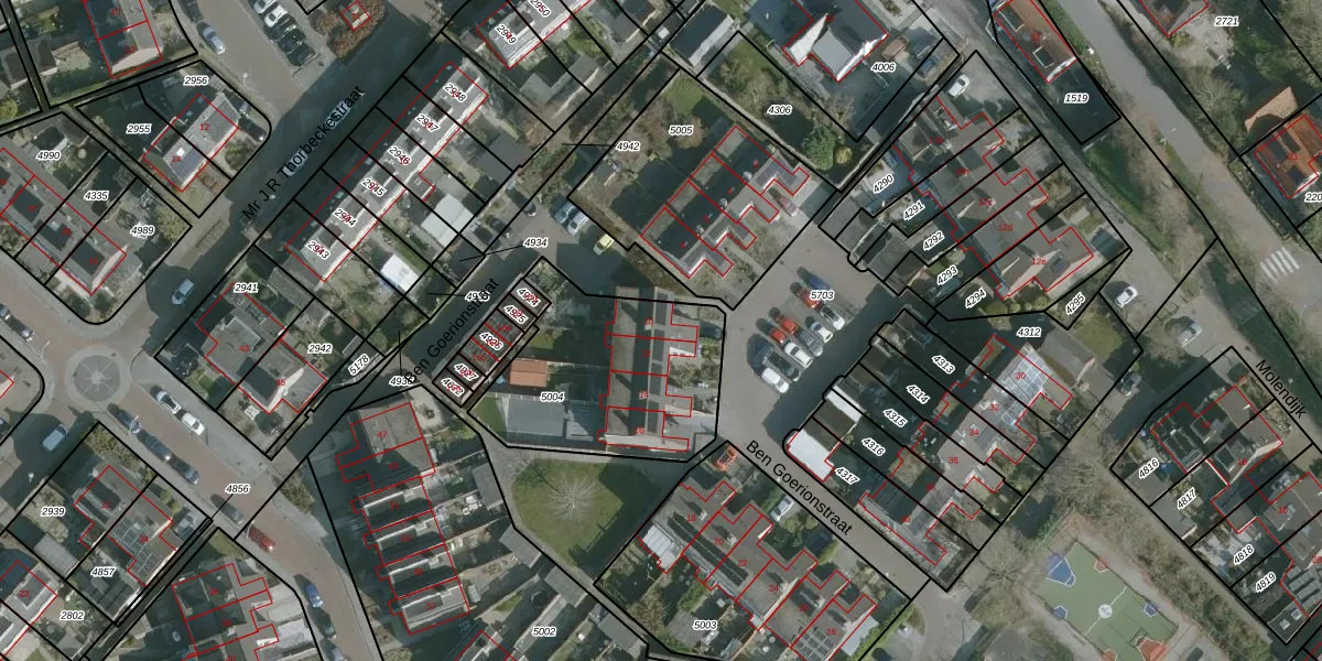 Het perceel waarop Ben Goerionstraat 10 staat heeft een oppervlakte van 780 m². Dit is een groot perceel. De perceeloppervlakte wordt geregistreerd door het Kadaster. Gedetailleerde informatie over de maten van dit perceel kunt u vinden in het rapport Kadastrale kaart met maatvoering van Ben Goerionstraat 10.