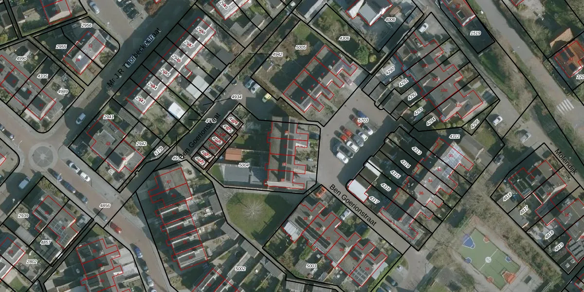 Het perceel waarop Ben Goerionstraat 12 staat heeft een oppervlakte van 780 m². Dit is een groot perceel. De perceeloppervlakte wordt geregistreerd door het Kadaster. Gedetailleerde informatie over de maten van dit perceel kunt u vinden in het rapport Kadastrale kaart met maatvoering van Ben Goerionstraat 12.