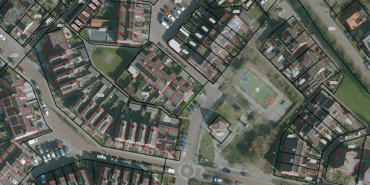 Het perceel waarop Ben Goerionstraat 28 staat heeft een oppervlakte van 1010 m². Dit is een zeer groot perceel. De perceeloppervlakte wordt geregistreerd door het Kadaster. Gedetailleerde informatie over de maten van dit perceel kunt u vinden in het rapport Kadastrale kaart met maatvoering van Ben Goerionstraat 28.