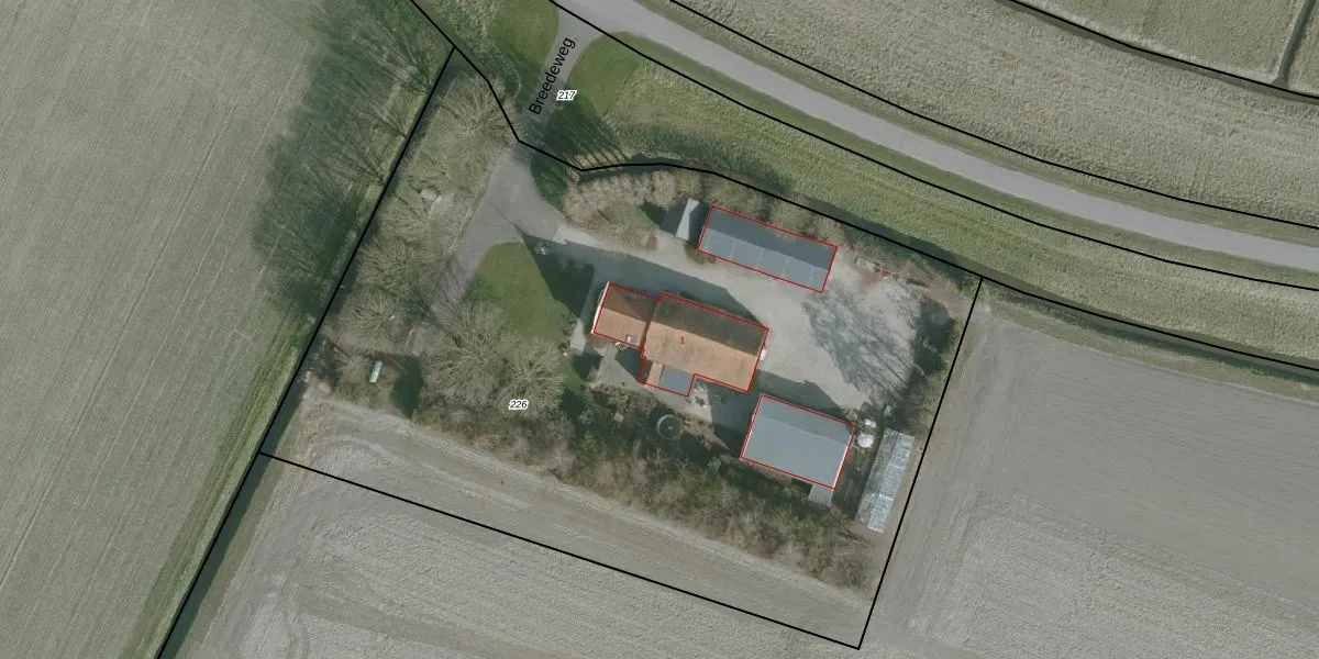 Het perceel waarop Breedeweg 1 staat heeft een oppervlakte van 5550 m². Dit is een zeer groot perceel. De perceeloppervlakte wordt geregistreerd door het Kadaster. Gedetailleerde informatie over de maten van dit perceel kunt u vinden in het rapport Kadastrale kaart met maatvoering van Breedeweg 1.