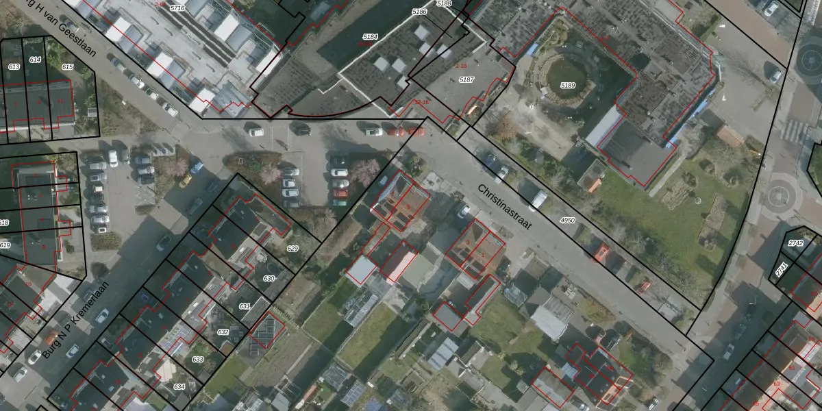 Het perceel waarop Christinastraat 5 staat heeft een oppervlakte van 1,5 ha. Dit is een zeer groot perceel. De perceeloppervlakte wordt geregistreerd door het Kadaster. Gedetailleerde informatie over de maten van dit perceel kunt u vinden in het rapport Kadastrale kaart met maatvoering van Christinastraat 5.