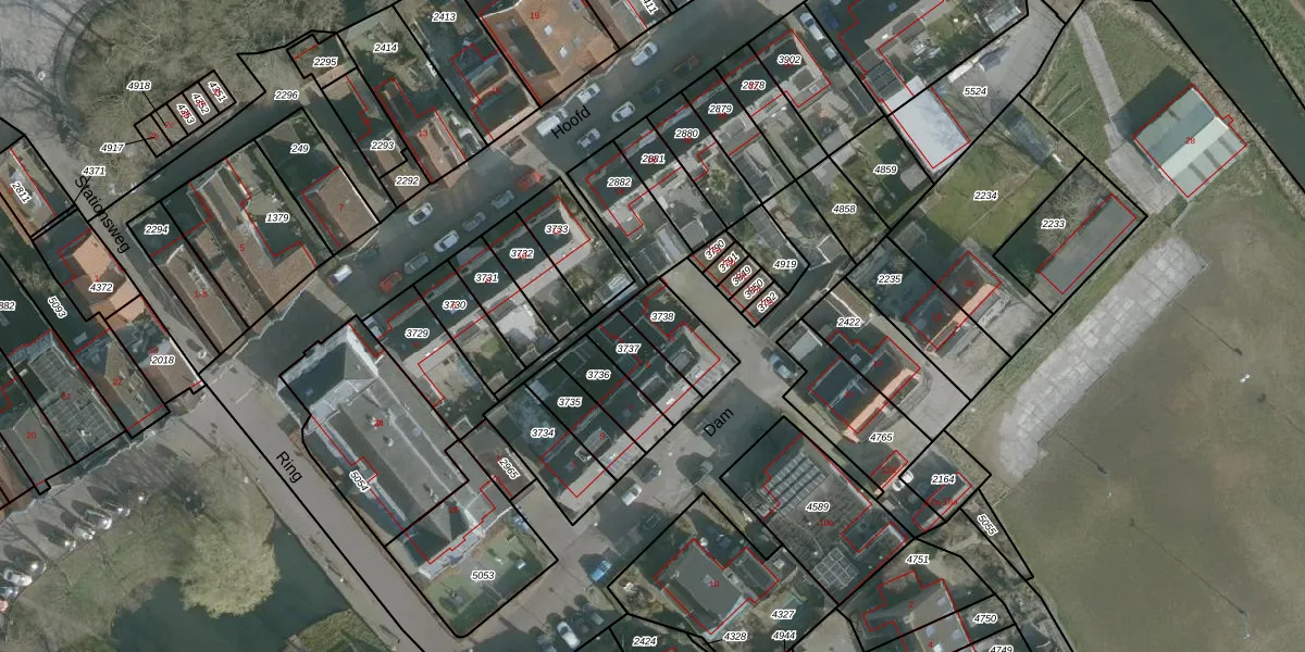 Gebruik de zoekbalk of klik op een perceel voor informatie over de adressen binnen dit perceel.