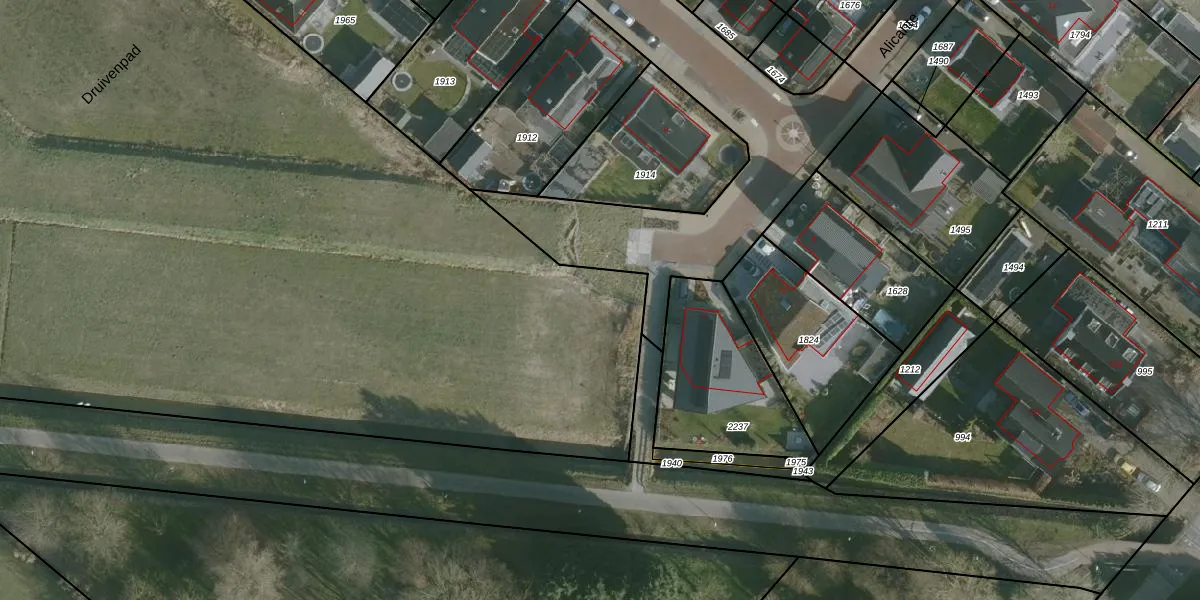 Het perceel waarop Dornfelder 32 staat heeft een oppervlakte van 2,5 ha. Dit is een zeer groot perceel. De perceeloppervlakte wordt geregistreerd door het Kadaster. Gedetailleerde informatie over de maten van dit perceel kunt u vinden in het rapport Kadastrale kaart met maatvoering van Dornfelder 32.