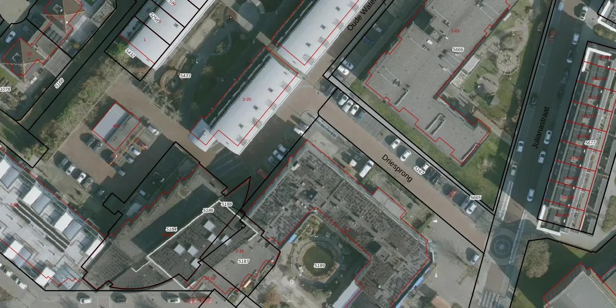 Driesprong 1-230 is gelegen op kadastraal perceel ZLD01B5189. Deze kadastrale aanduiding is uniek en wordt gebruikt door het Kadaster om eigendomsrechten en andere zakelijke rechten vast te leggen. Het perceel maakt onderdeel uit van de kadastrale gemeente Zuidland.