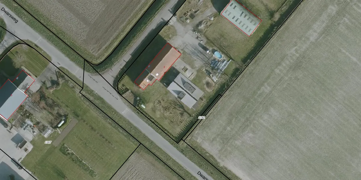 Het perceel waarop Dwarsweg 2 staat heeft een oppervlakte van 6665 m². Dit is een zeer groot perceel. De perceeloppervlakte wordt geregistreerd door het Kadaster. Gedetailleerde informatie over de maten van dit perceel kunt u vinden in het rapport Kadastrale kaart met maatvoering van Dwarsweg 2.