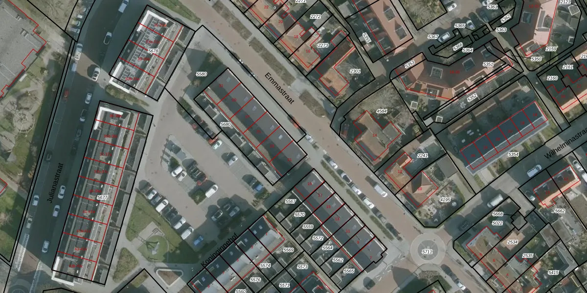 Het perceel waarop Emmastraat 21 staat heeft een oppervlakte van 632 m². Dit is een groot perceel. De perceeloppervlakte wordt geregistreerd door het Kadaster. Gedetailleerde informatie over de maten van dit perceel kunt u vinden in het rapport Kadastrale kaart met maatvoering van Emmastraat 21.